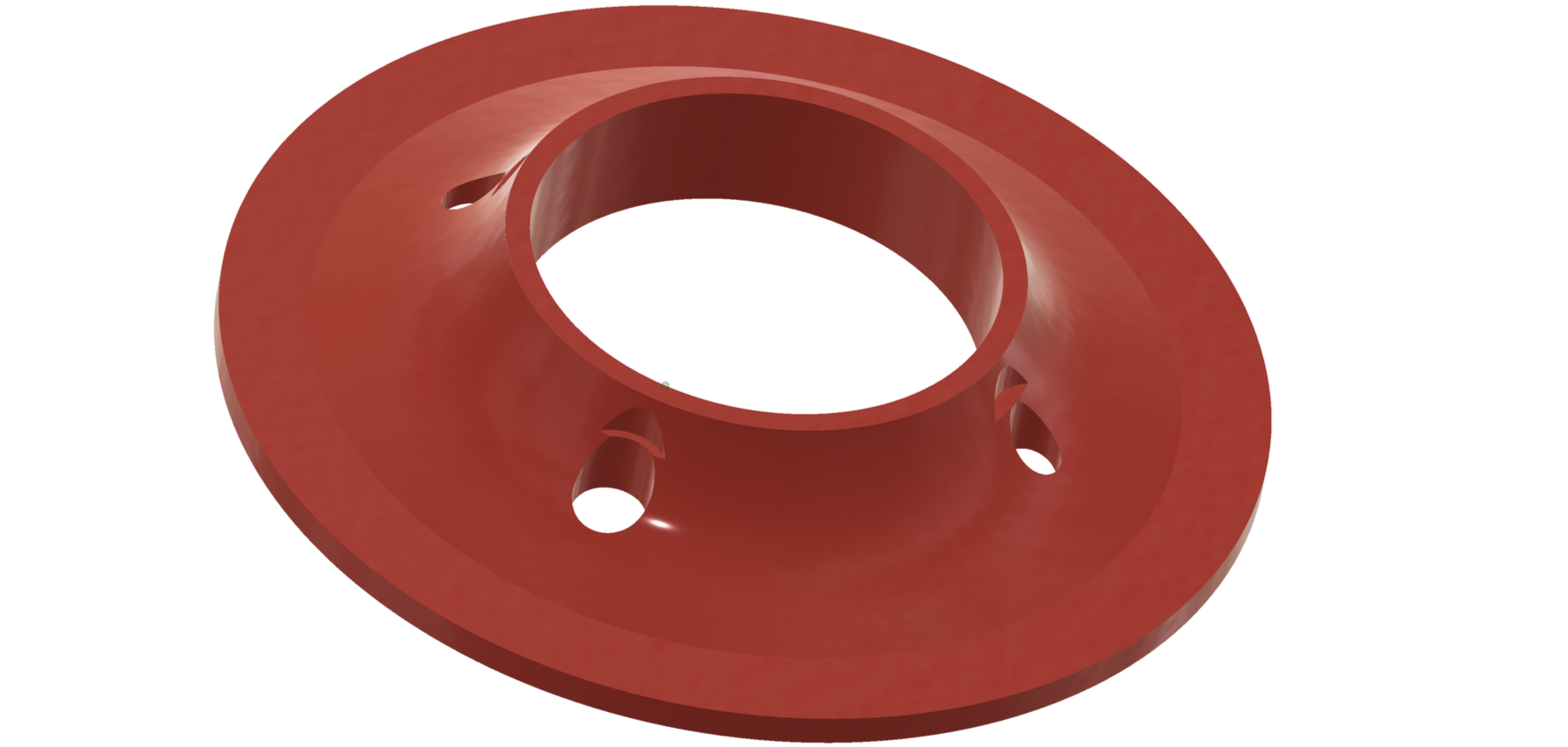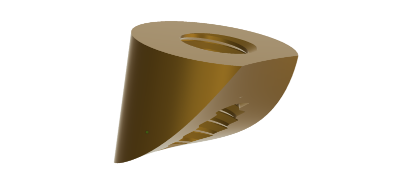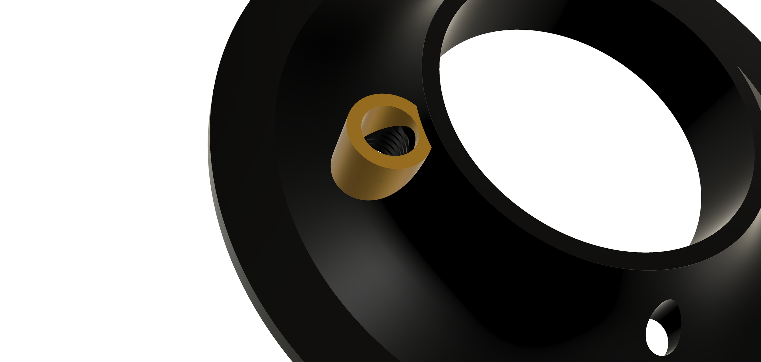 This is what an initial draft of the pedestal looks like. It’s actually quite a complex shape. It could be machined from a round bar and tapped (this is M6 but that could be M8 depending on how the pedestal is fixed to the hub), but it’s important that there is good surface connection between the pedestal and the hub and that the requires the pedestal to have this compound curve machined.
