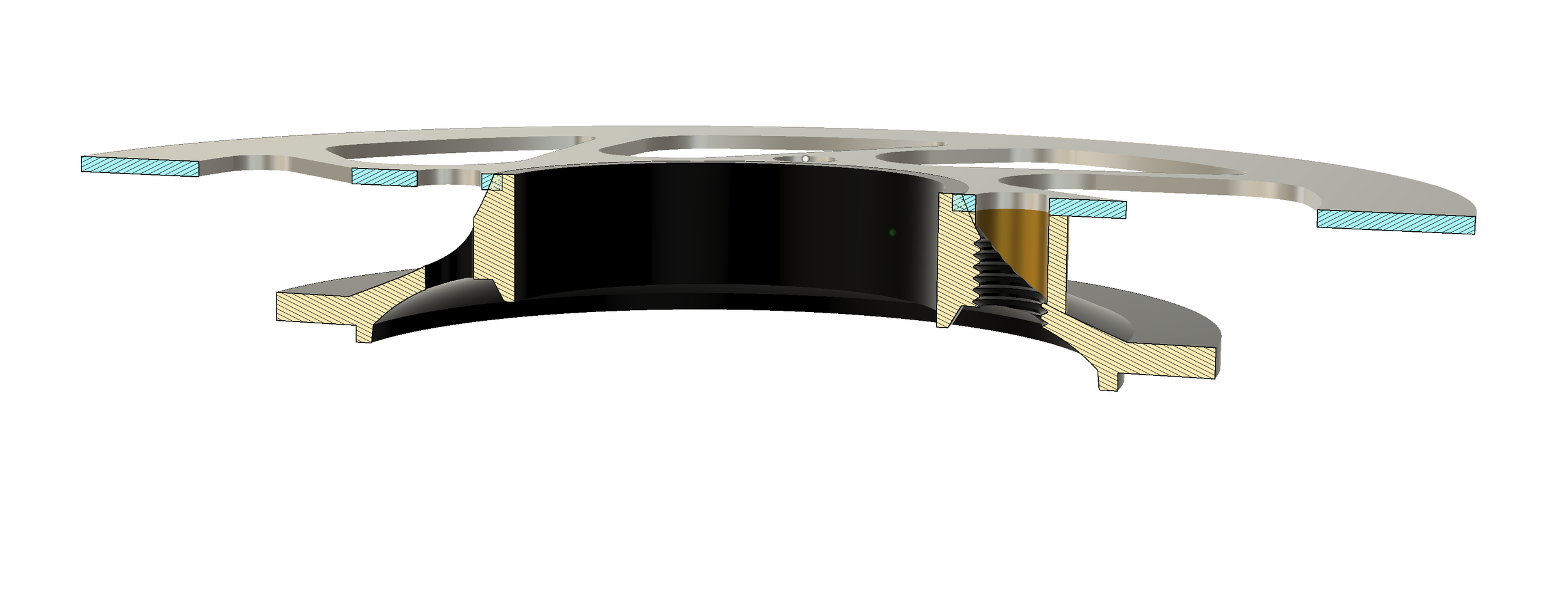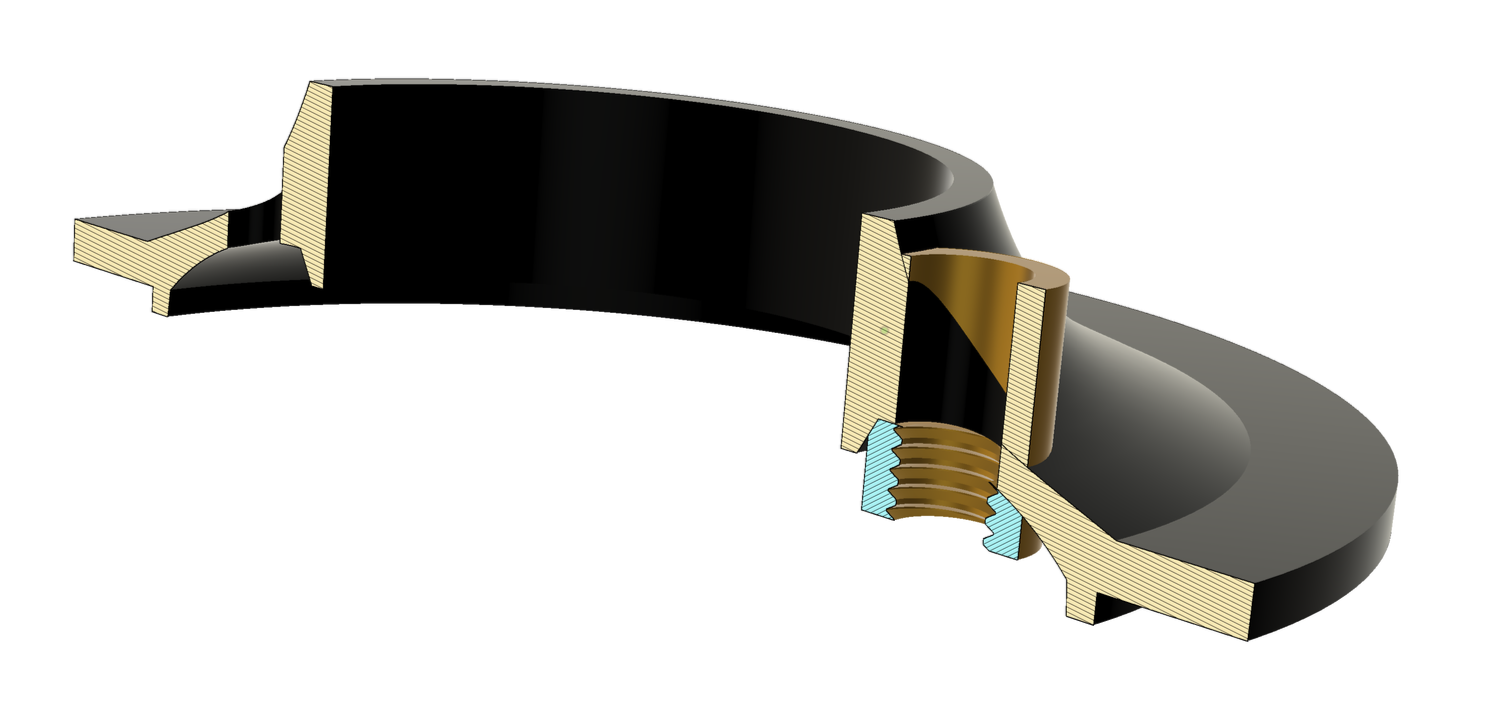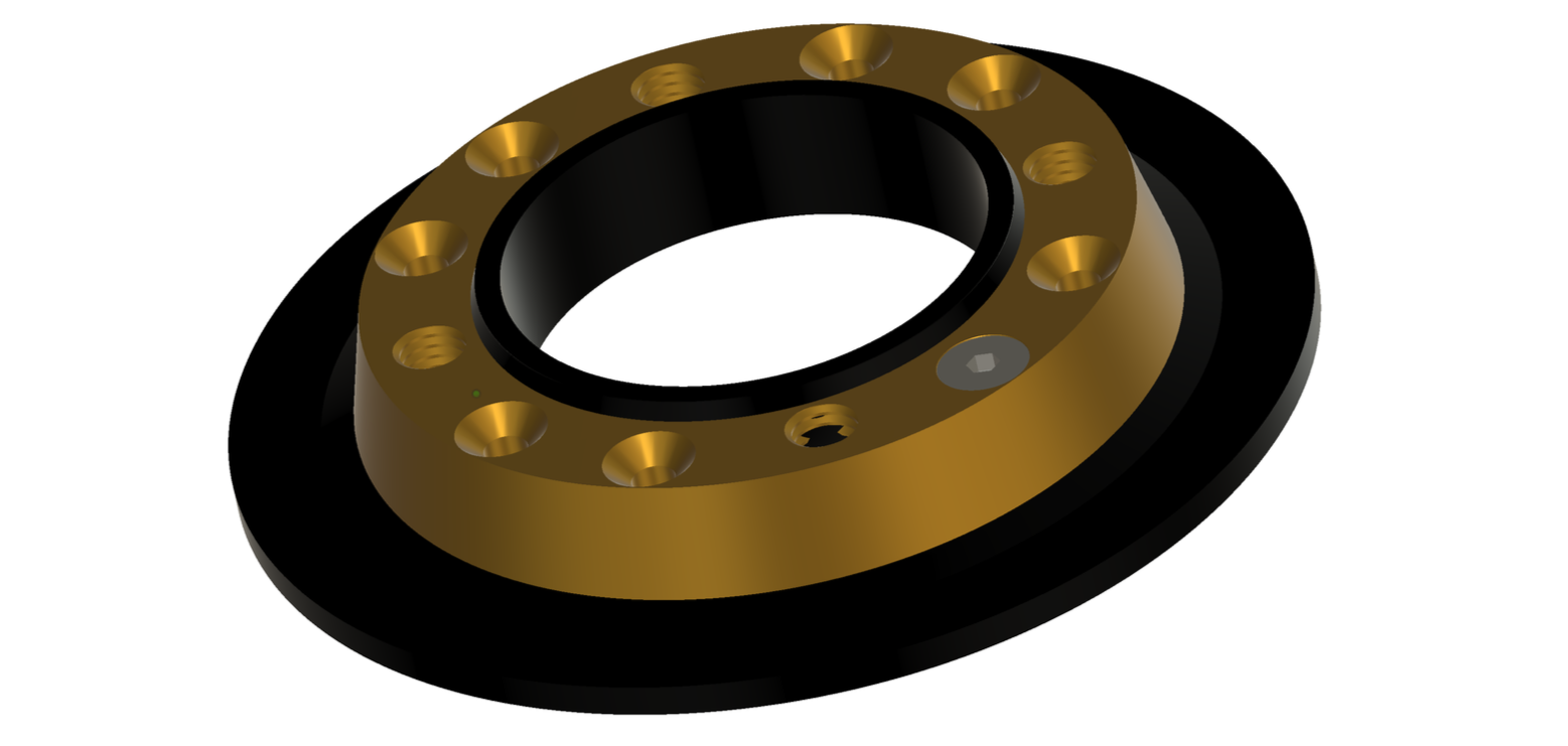 You can’t really tell from the images but the underside of the ring would be machined to the same profile as the hub shell. The ring is secured to the hub shell using 8 x M5 machine screws. In the drawing, you can see one of these screws but there would be 8.
