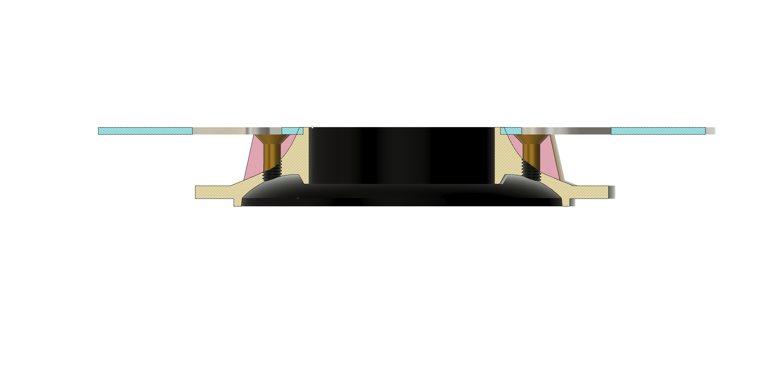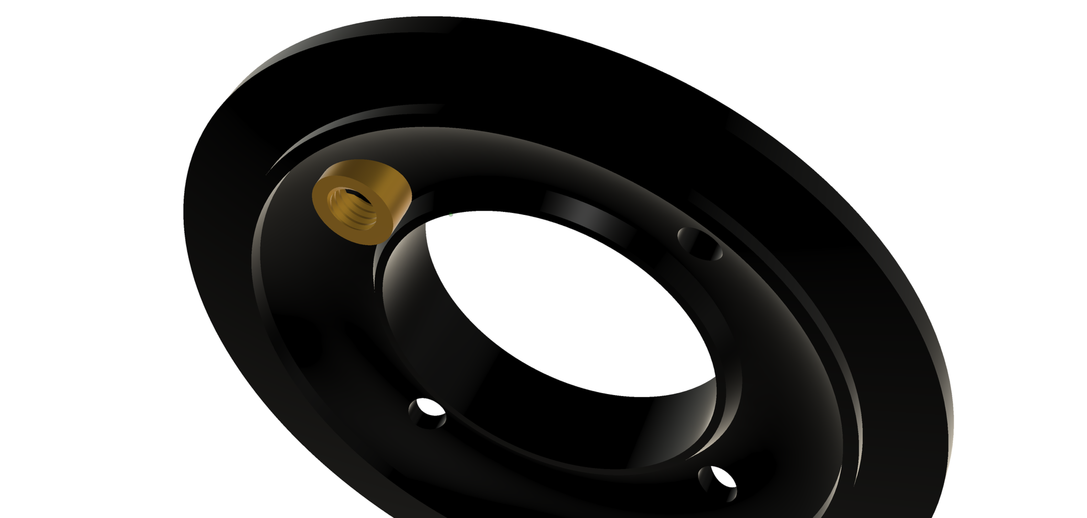 This is another approach to fixing the pedestal. Here we use a ‘nut’ on the inside of the shell. The rotor mounting hardware screws into this from above and through the outer pedestal. There’s a little more thread engagement on this one, but still not loads, and I’ve deliberately not checked the actual clearance we have inside the shell. I suspect there’s not enough for this, but it’s worth exploring, I think.