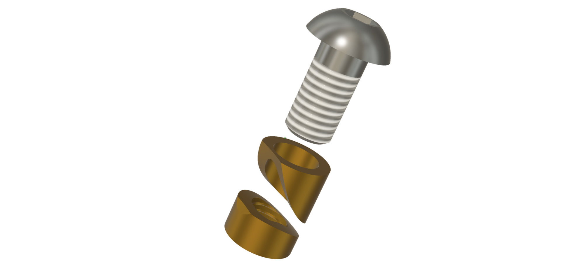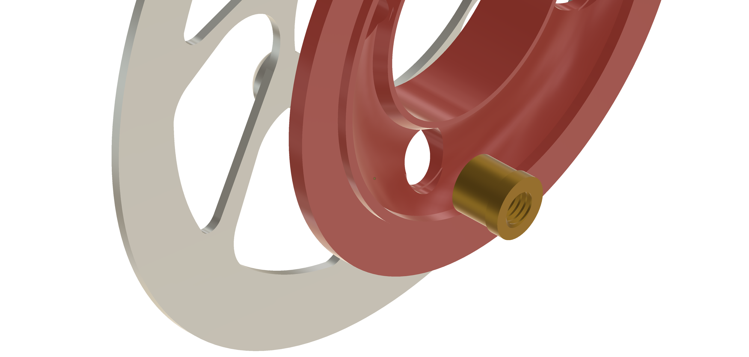 This would work. However, it’s crucial that the two threaded parts were tapped at the same time to keep the threads in sync. If we don’t do that the rotor fastener (M8 bolt) will bind up